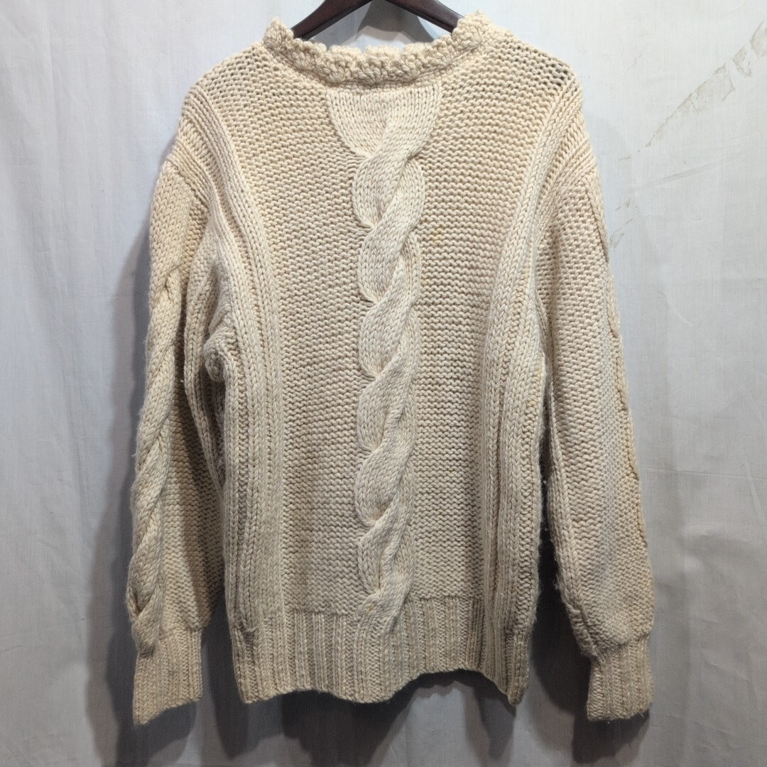 - 80s Vintage DERANGER ケーブルニット セーター L相当 メンズ レディース フィッシャーマン 白 ホワイト 厚手 古着 80年代 ビンテージ