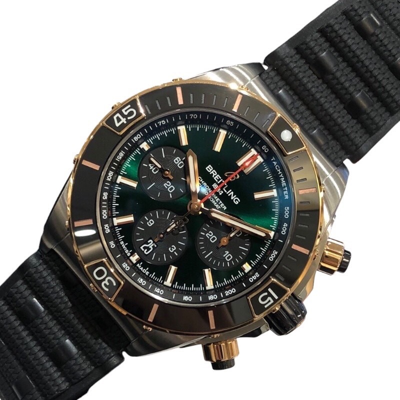 > ブライトリング BREITLING スーパークロノマットB01 44 UB0136 ブラック/グリーン文字盤 ピンクゴールド×SS 腕時計 メンズ 中古