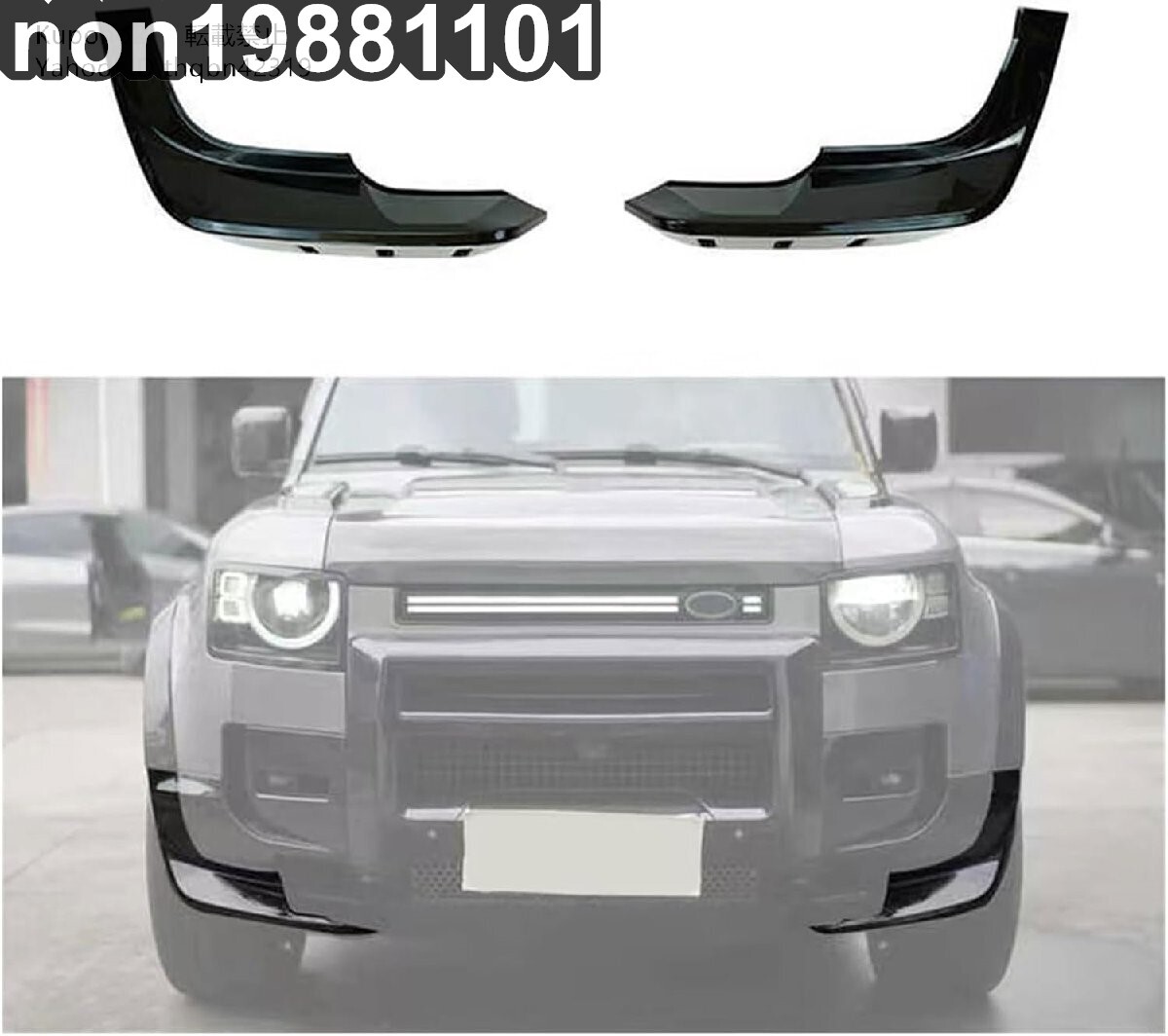 - ランドローバーディフェンダー 90 110 2020-2023 フロントバンパーエアディフレクターリップスポイラーブラック ABS カーアクセサリー