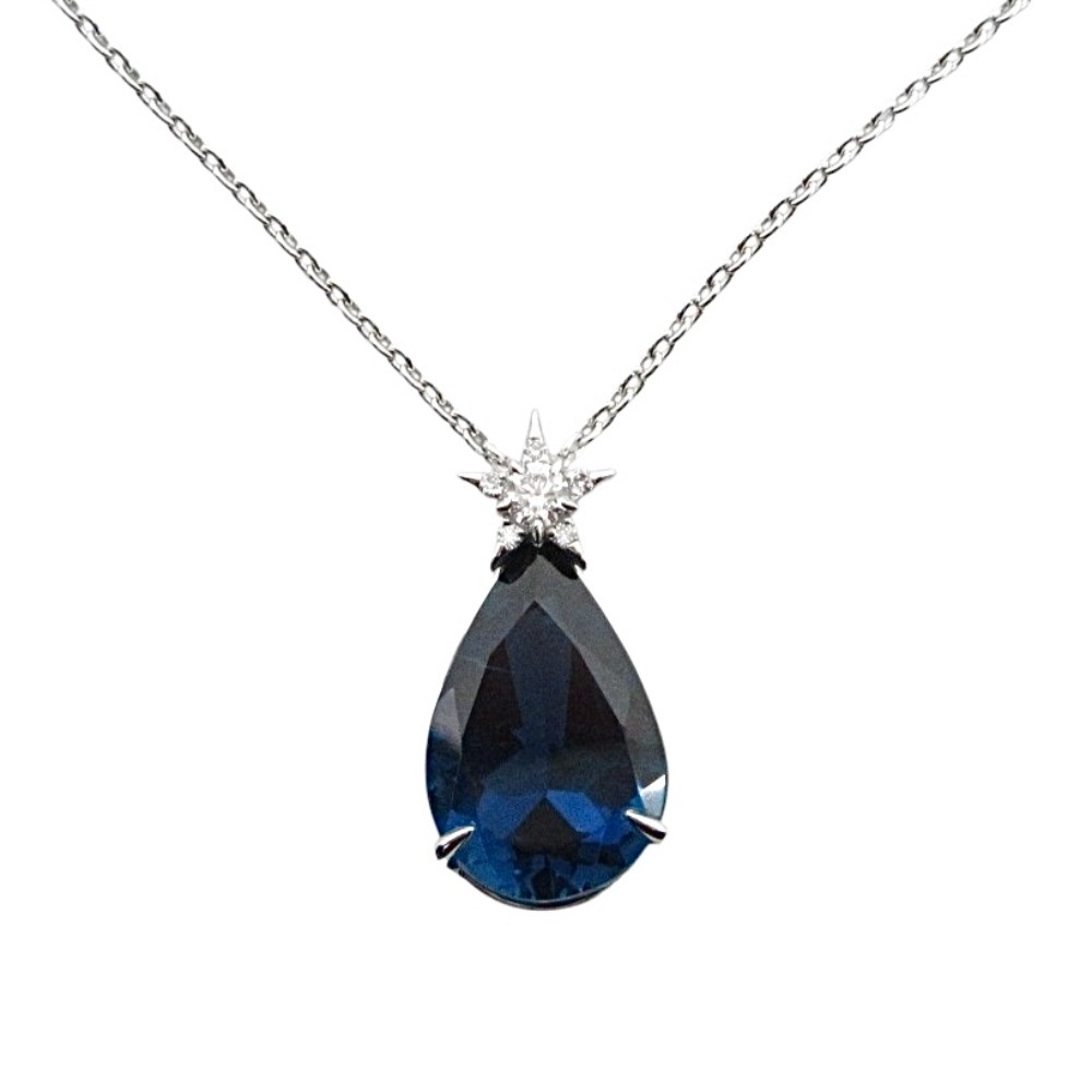 > 美品 Star Jewelry スタージュエリー NIGHT BLUE K18WG/ブルートパーズ/ダイヤモンド 0.08ct チェーンネックレス シルバー ブルー