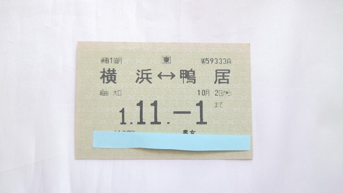 - ▲JR東日本▲横浜⇔鴨居 定期券▲印発券 平成1年11月1日 日付並び 印刷発行機券 マルス券