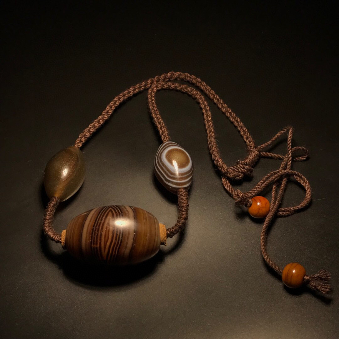 - 【仁】『瑪瑙製・細密彫・一眼天珠鎖骨ネックレス・根付・裝身具』極細工 古賞物 中国古玩 古美術 古美味