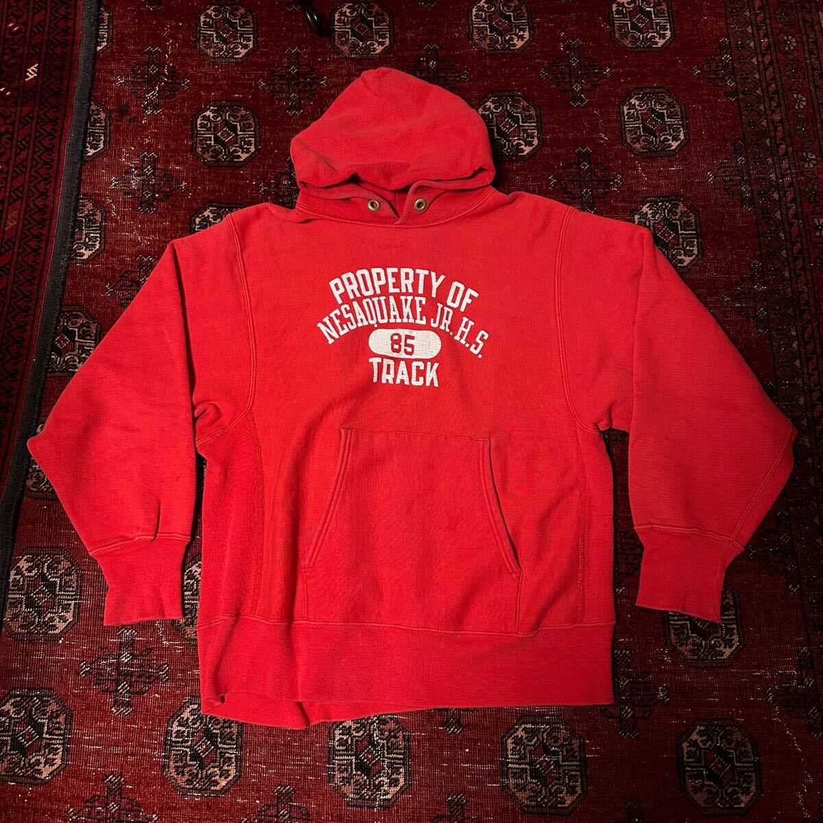 > 【旧ハトメ フード小さめ】 80s champion リバースウィーブ スウェット パーカー トリコタグ 4段プリント チャンピオン ヴィンテージ 90s