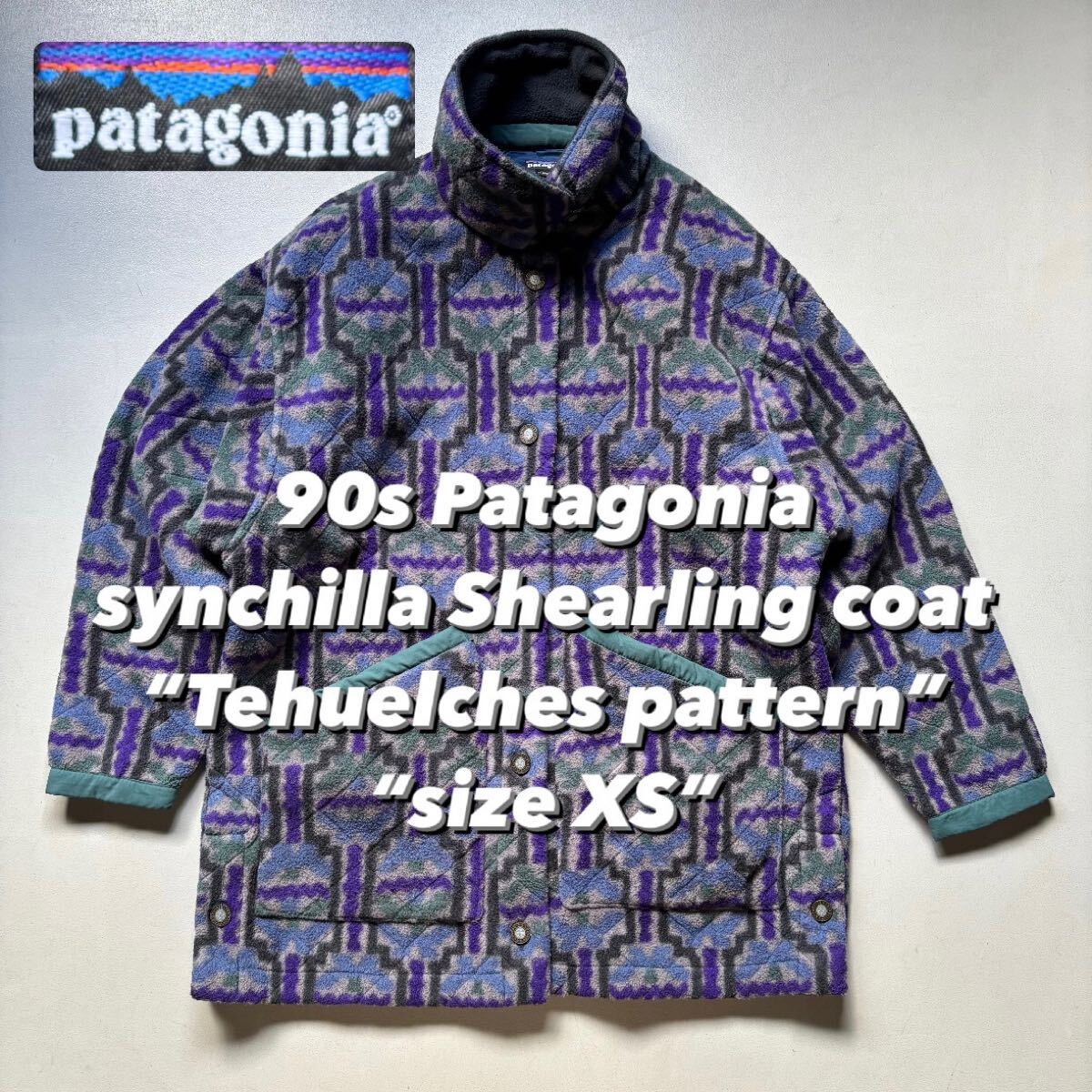 > Patagonia synchilla Shearling coat “Tehuelches pattern” “size XS” 90年代 パタゴニア シャーリングコート 雪無しタグ テウェルチ柄