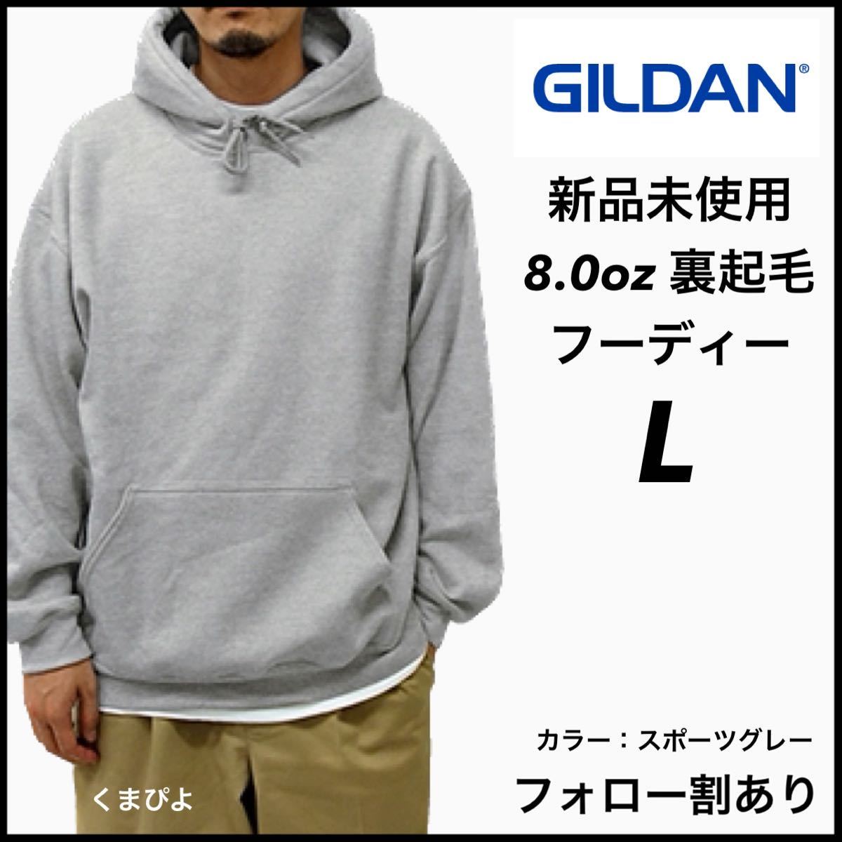- 新品未使用 ギルダン 8oz プルオーバーフーディー 裏起毛 パーカー GILDAN スポーツグレー L