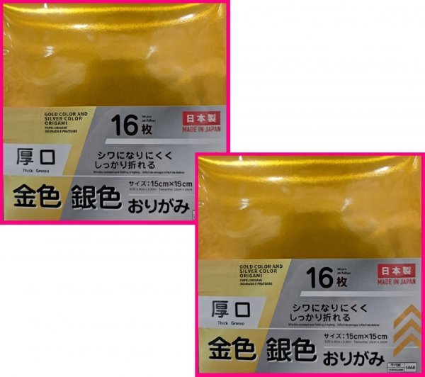 > 【素材の奇麗な おりがみ:厚口 金色・銀色:32枚:16枚x2セット】★綺麗 可愛い 「金・銀柄」★15cm:千代紙:折り紙:折紙 ちよがみ