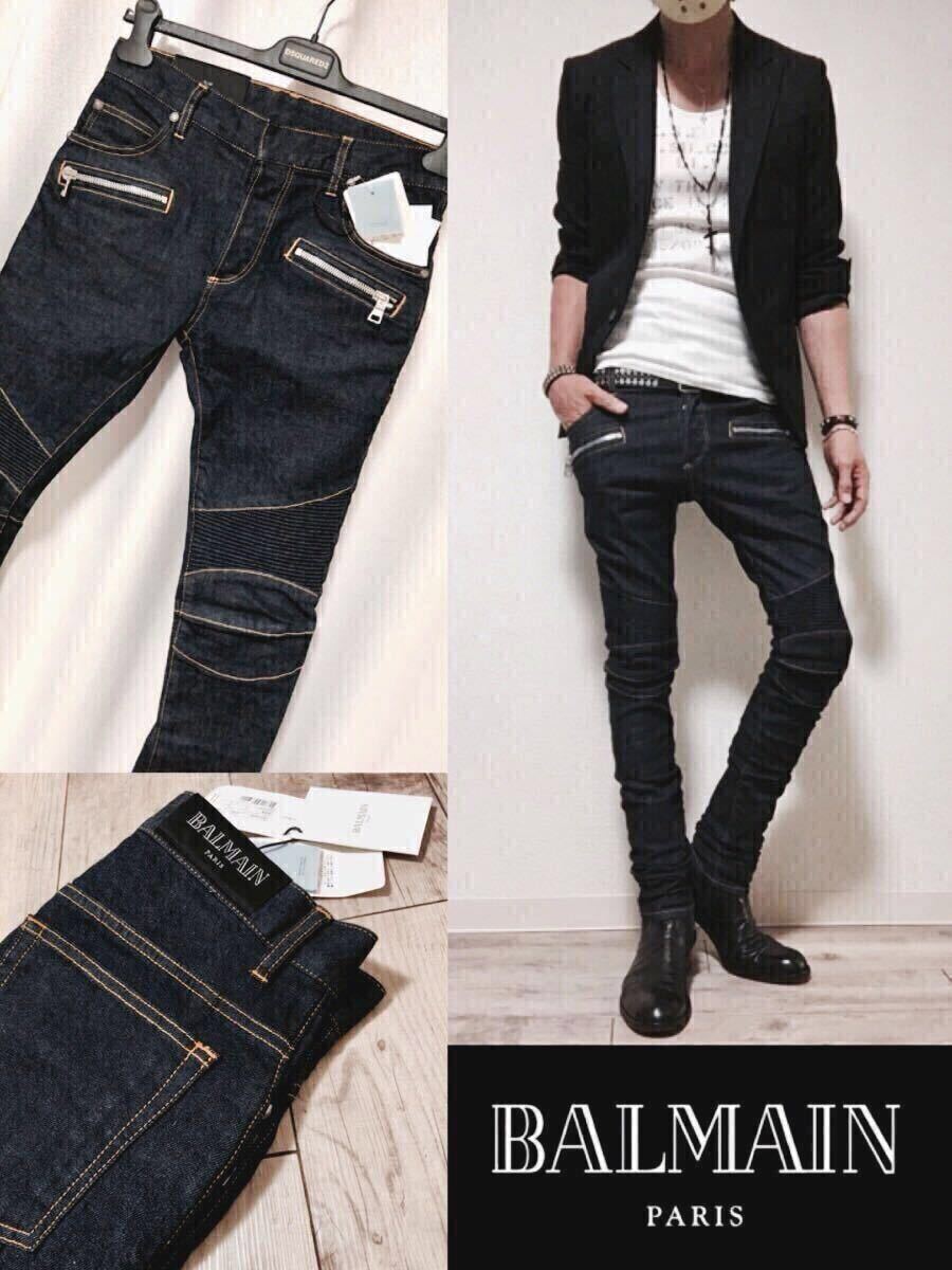 > 正規 BALMAIN 未使用 ストレッチバイカーパンツ バルマン インディゴ リジッドデニム ★