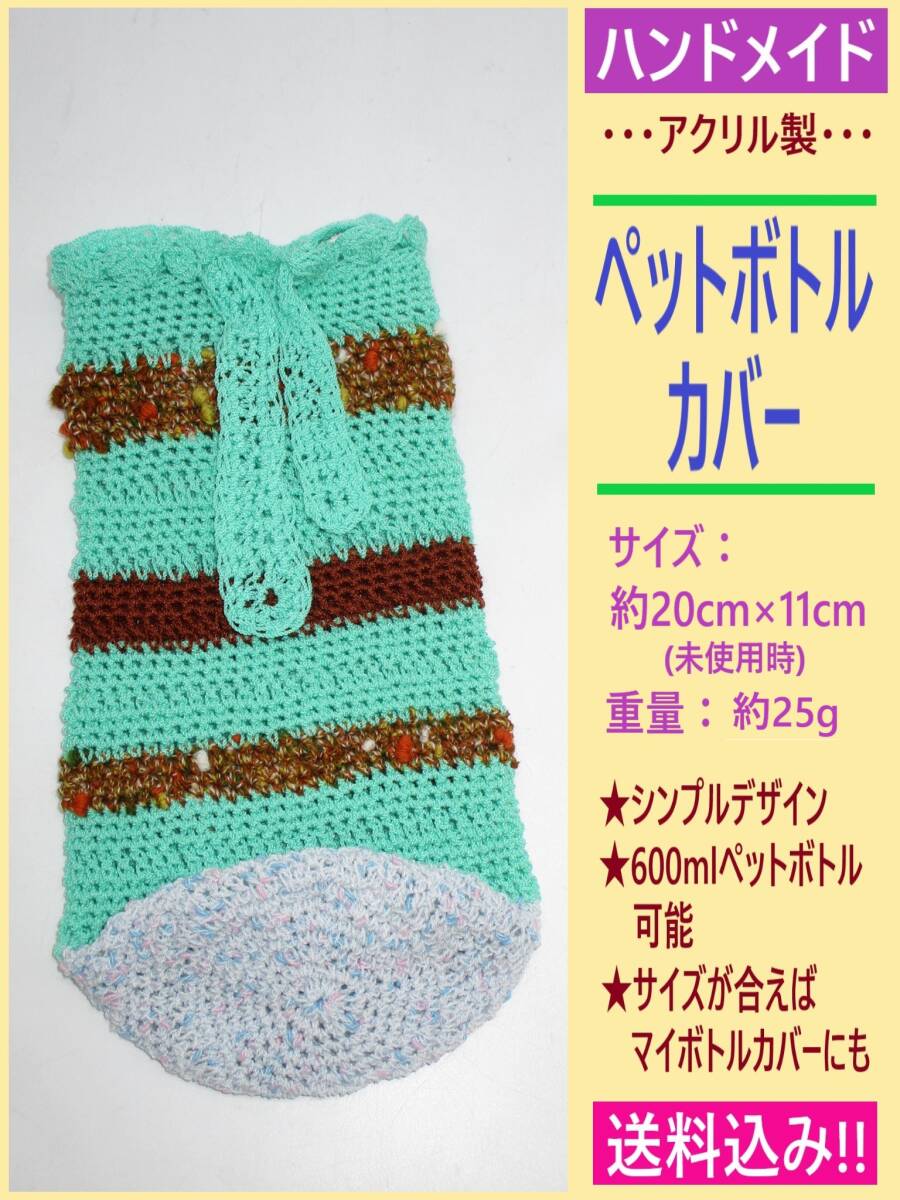> ハンドメイド ペットボトル カバー 1点 D 手編み シンプル アクリル 目印 大きめ 600ml可能 ボトル ホルダー マイボトル 水筒 袋 ボーダー