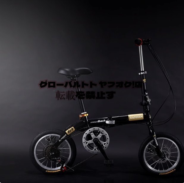 - 折りたたみ自転車 14インチ 6段変速 自転車 コンパクト 収納 軽量 ディスクブレーキ 大人用 子供用 通勤 通学 車載 プレゼント