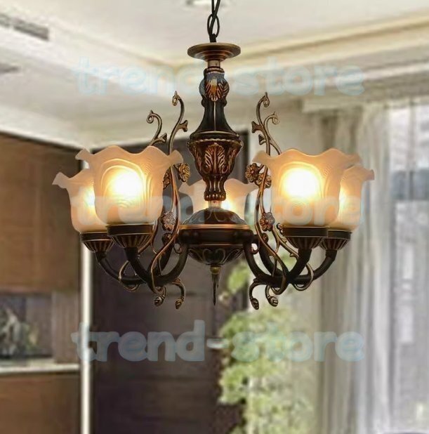 - 極美品★ 希少 古美色 ハンドペイントシーリングシャンデリア 6灯 品質保証