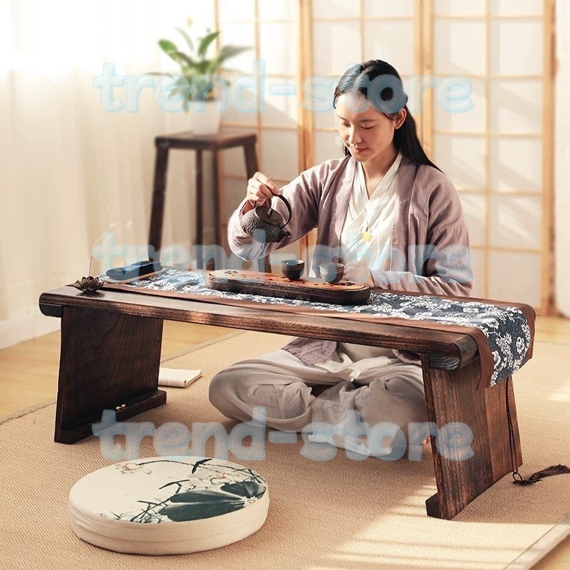 > 二重折りたたみコーヒーテーブルアウトドアテーブル家庭用音響棚リビング収納棚和式畳ローテーブル床に座るための家具 100x40x37cm