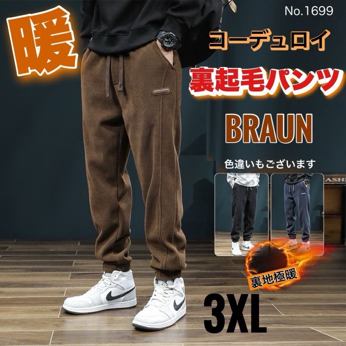 - コーデュロイ 裏起毛パンツ ブラウン 3XL スウェットパンツ 極暖 メンズ