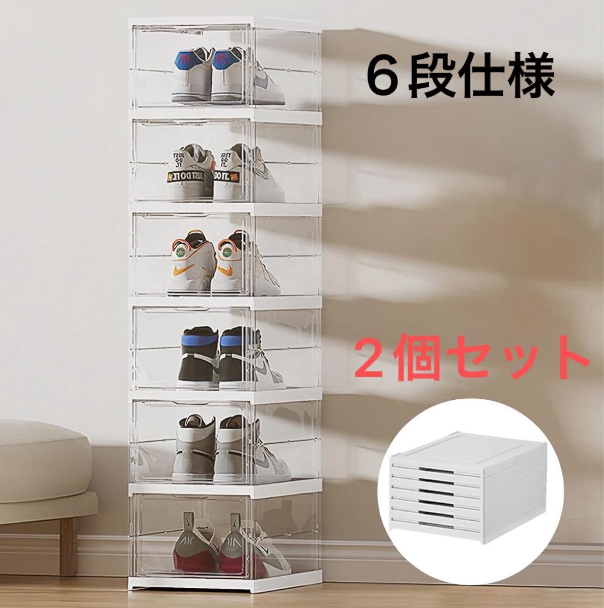 - 【2個セット】シューズラック シューズ収納 折りたたみ式シューズ 収納ボックス シューズケース スニーカー 靴箱 下駄箱 コレクション 6段