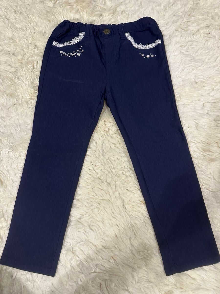 - axes femme kids/kids/キッズ/子供用/女の子/ストレッチ素材/タイトストレート/刺繍/サイズ120cm /ネイビー/