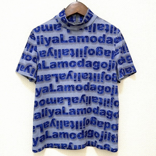 > #snc 伊太利屋 GKITALIYA カットソー 9 グレー系 青 半袖 英字 ハイネック バックジップ レディース [927287]