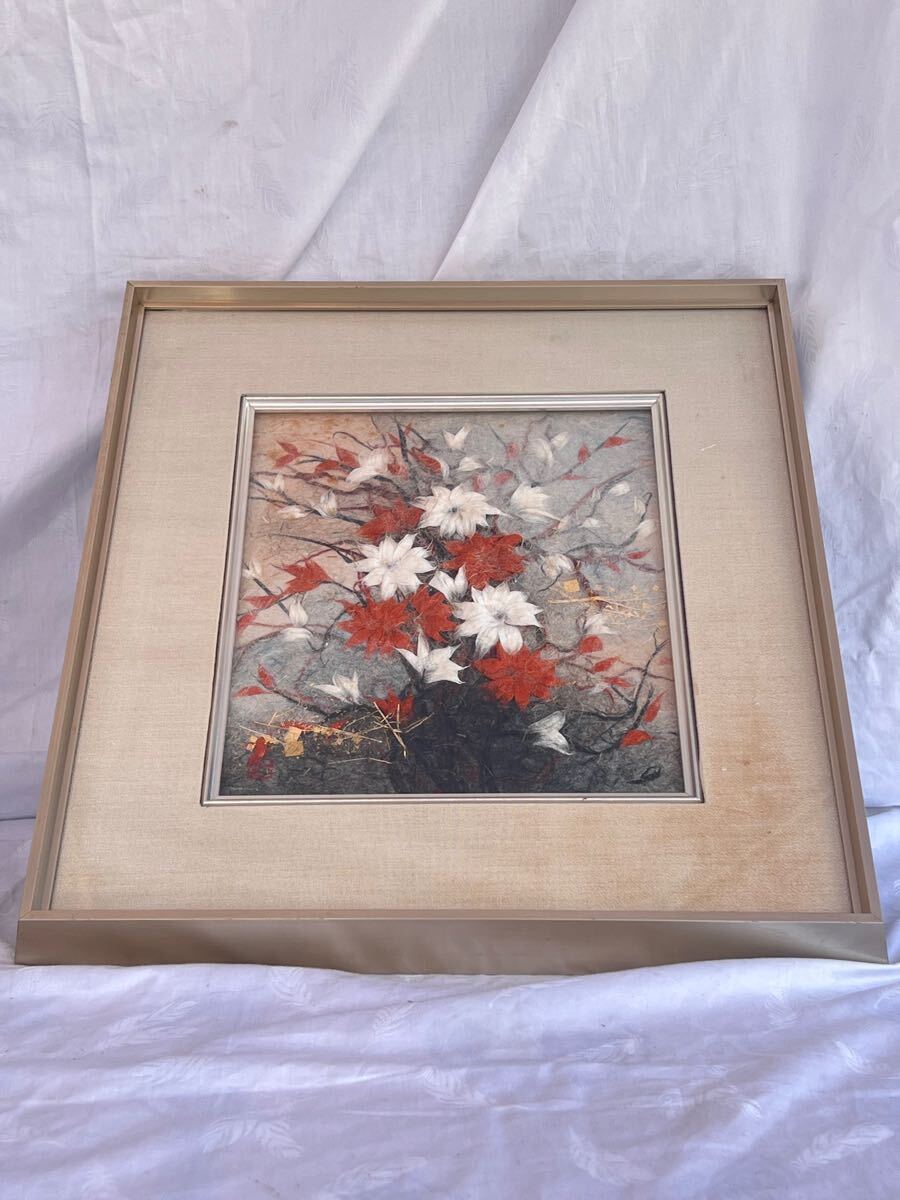 - ◆真作 アルミ額 色紙額 貼り絵 山内一生 ◆B-2181