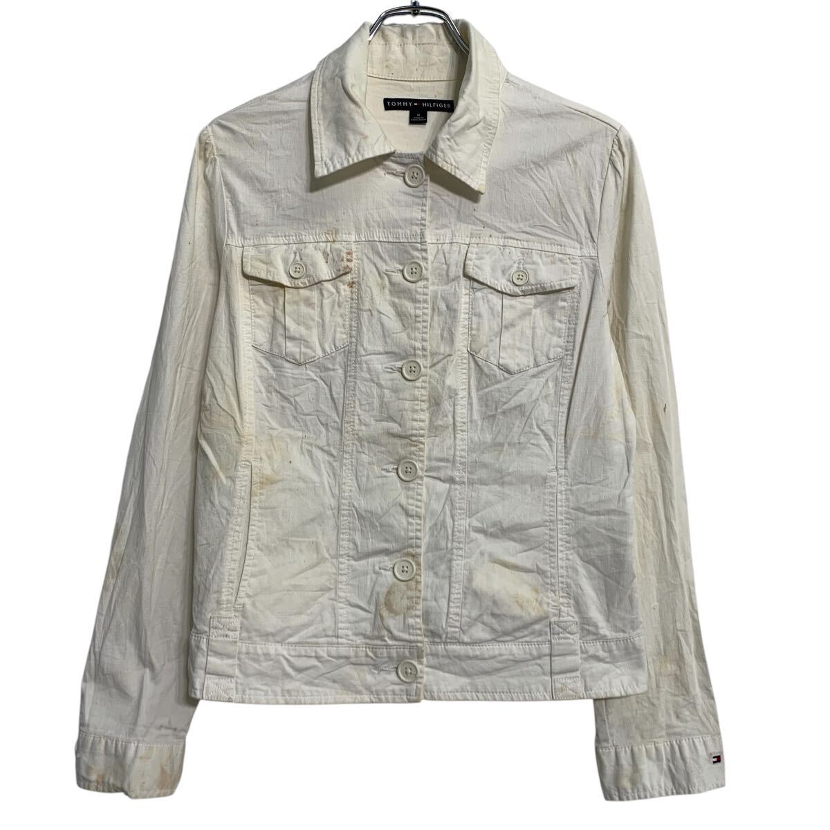 > TOMMY HILFIGER コットンジャケット M ホワイト トミーヒルフィガー ボタン マルチポケット シンプル 古着卸 アメリカ仕入 a701-6051