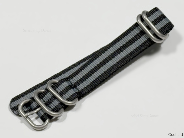 - ラグ幅18mm 腕時計 NATOベルト リング ストラップ ブラック グレー ストライプ ナイロン バンド