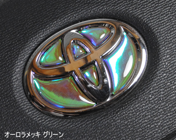 - トヨタ ステアリング エンブレムシート オーロラメッキグリーン ハンドル用 SDH-T01 樹脂盛立体3D加工 マジョーラ レインボー