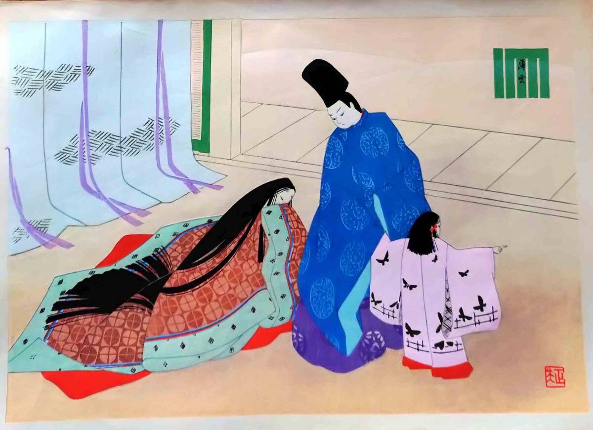 - f24121419〇彩色木版画1枚 源氏物語五十四帖 薄雲 山田書院 昭和時代〇和本古書古文書