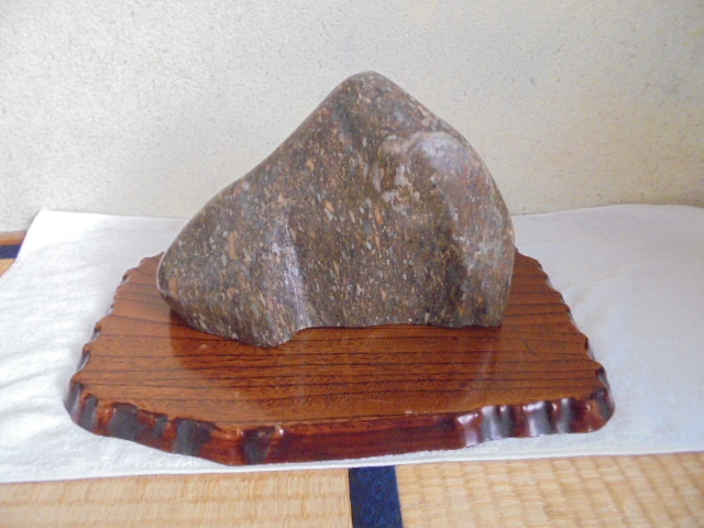 > 石の置物-鑑賞石・自然石/大理石?orその他?/石の種類は不明/底裏にマジック書き:S40.12.25/プラスチック製敷板付-おまけ/