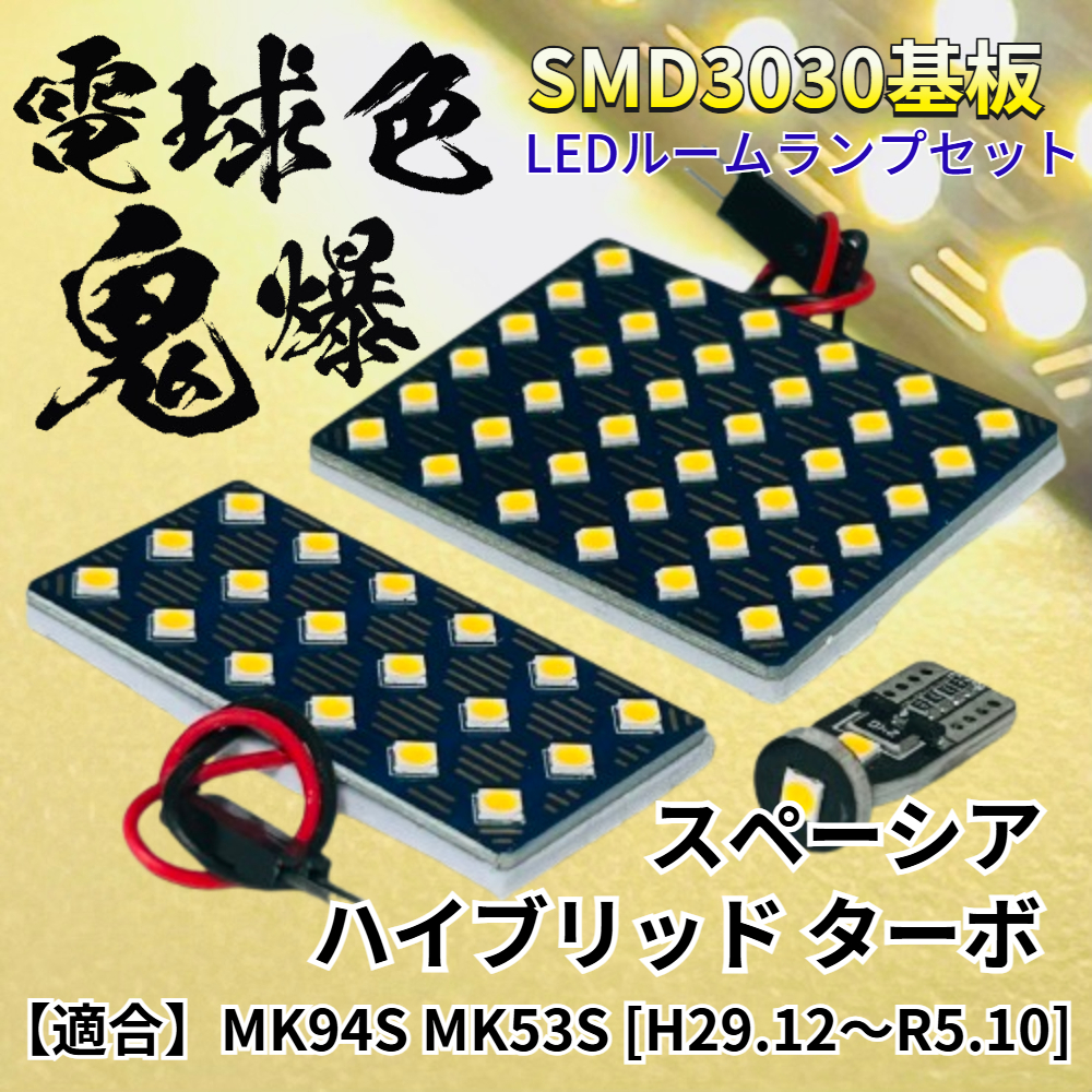 - 【電球色】スペーシア ハイブリッド ターボ MK94S MK53S 暖色 鬼爆基板 3030SMD LED ルームランプ セット 車内灯 パーツ アクセサリ スズキ