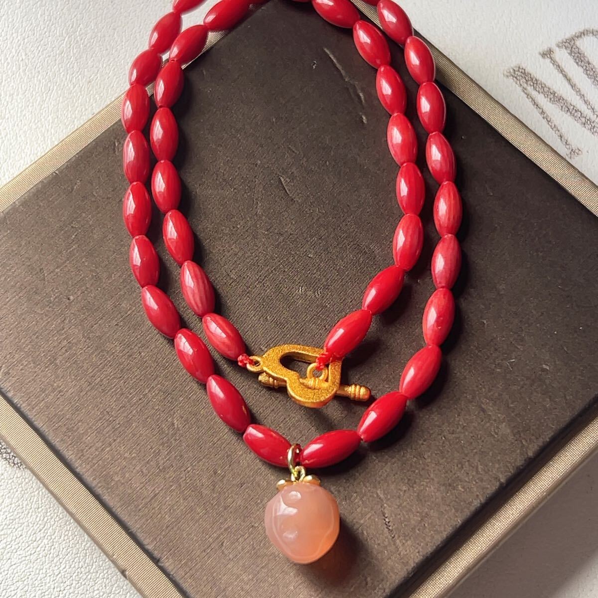 - ◇赤珊瑚+瑪瑙(苺形)◇レッドコーラル◇ネックレス◇パワーストーン◇天然石◇巾着袋付き◇プレゼント028P1209