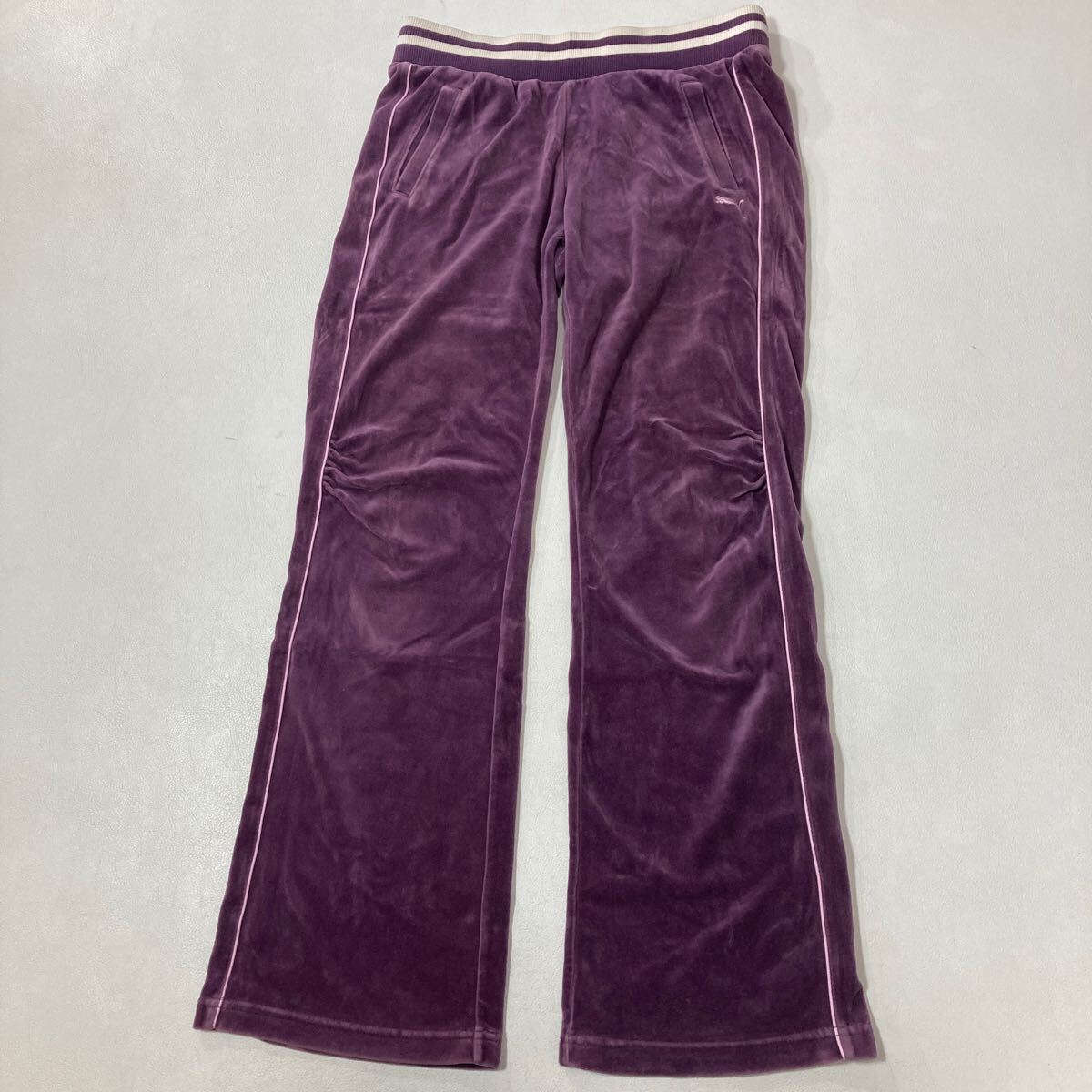 > 252 PUMA プーマ ベロア フレア トラックパンツ レディース M パープル Y2K ストレッチ スポーツ 50120AA