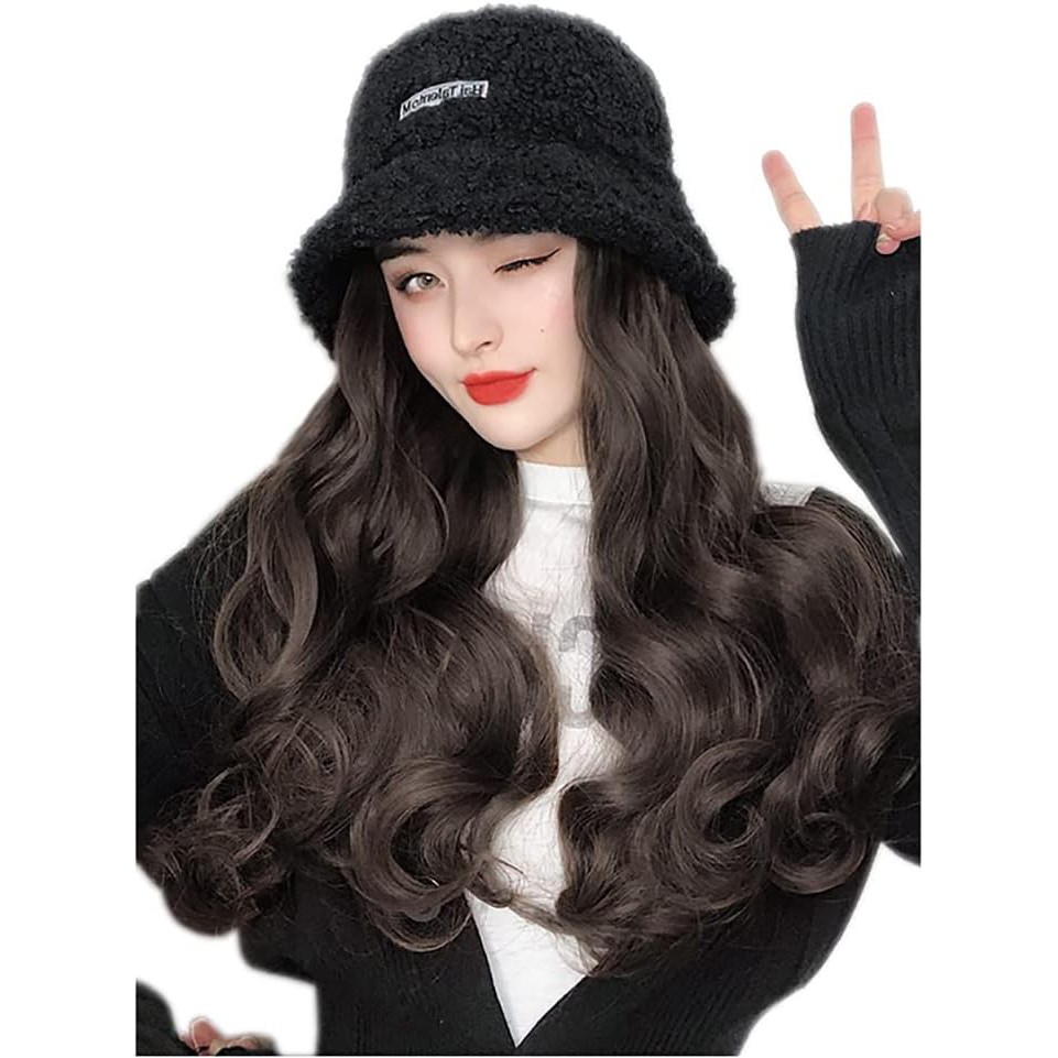 - 【新品】帽子付きウィッグ ブラック ロング ウェーブ ブラックブラウン バケハ コスプレ かつら