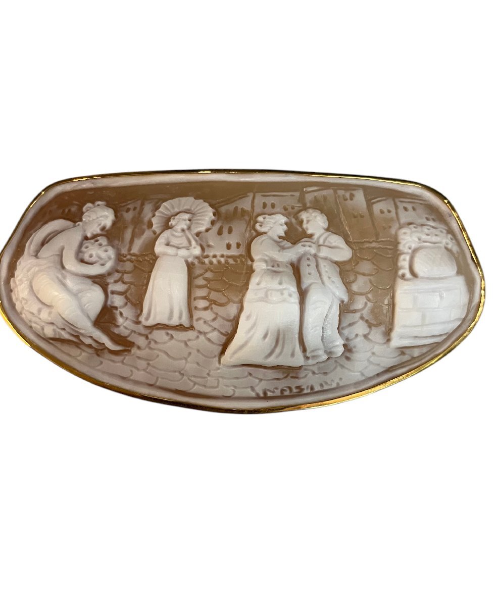 - qoj.Y3I21 K18 シェルカメオ 中世 風景 モチーフ 2way 作家ブローチ ペンダントトップ アンティーク