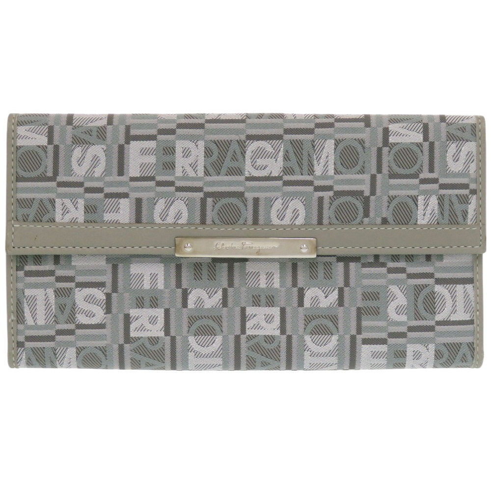 - 美品 サルヴァトーレフェラガモ JV-22 8249 レザー/キャンバス グレー 長財布 0072 Salvatore Ferragamo