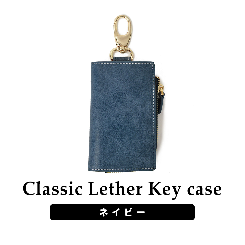 - キーケース 4連 ユニセック ネイビー 紺 刻印なし 本革 レザー 小銭入れ付き スマートキー ギフト メール便可2