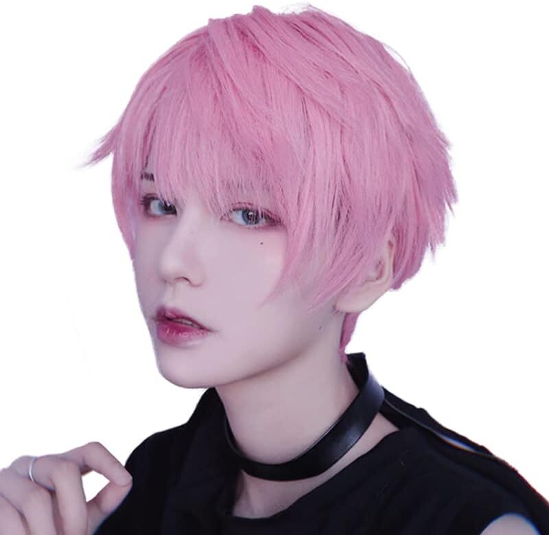 - 【新品】フルウィッグ ブラッシュピンク ショート 耐熱 コスプレ かつら