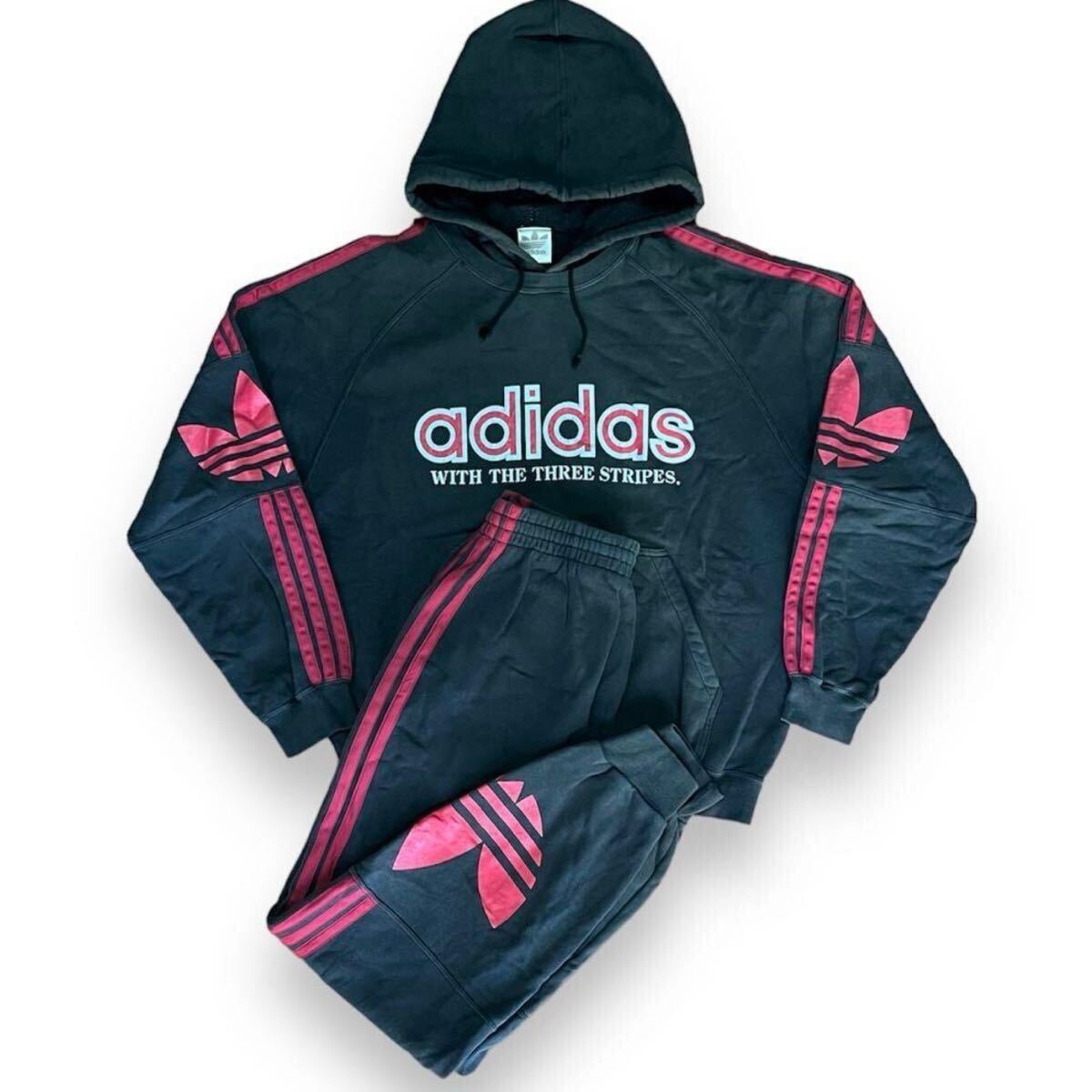 - 当時物 値引可 RUN DMC 着 adidas セットアップ 鬼フェード 後付けパーカー トレフォイル 80s アディダス 90s レザー ヴィンテージ vintage