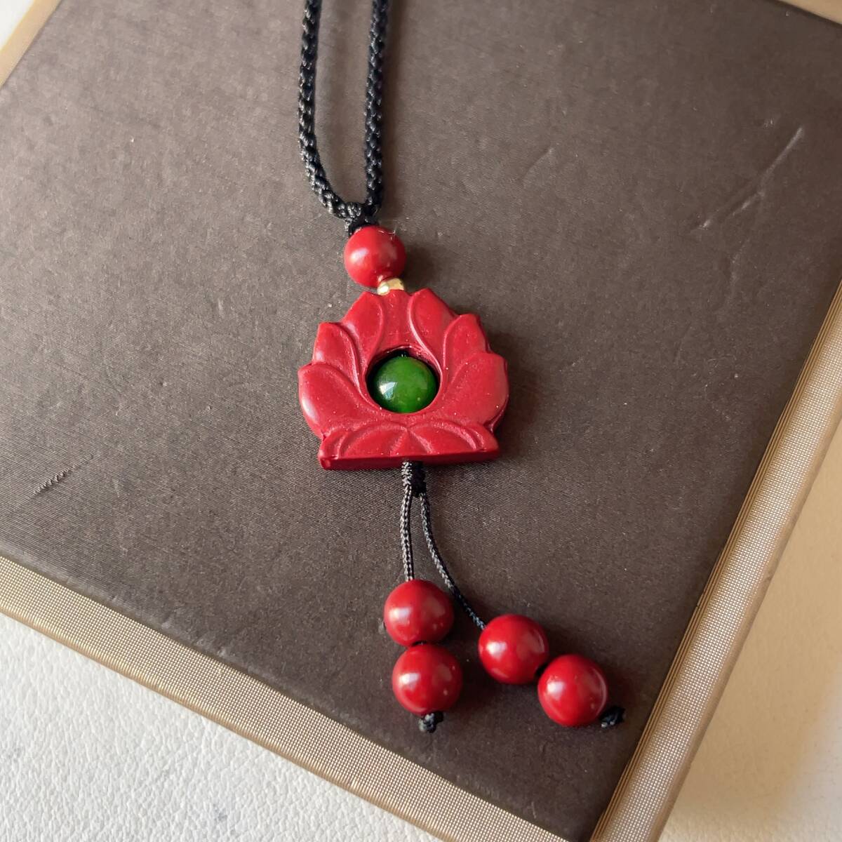 > ◇シナバー(辰砂)+台湾碧玉1粒◇ネックレス◇ペンダント◇パワーストーン◇巾着袋付き◇プレゼント034P1221