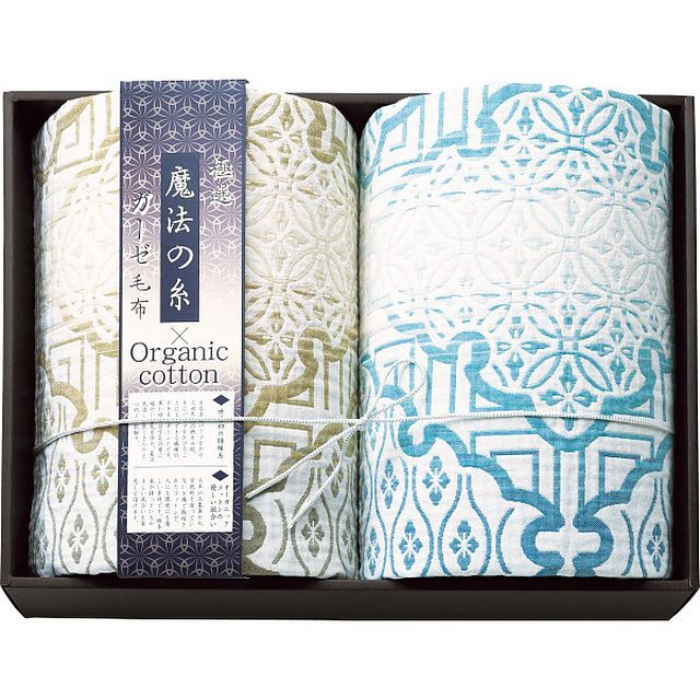 - 〔ギフト〕極選魔法の糸×オーガニック プレミアム四重織ガーゼ毛布2枚セット
