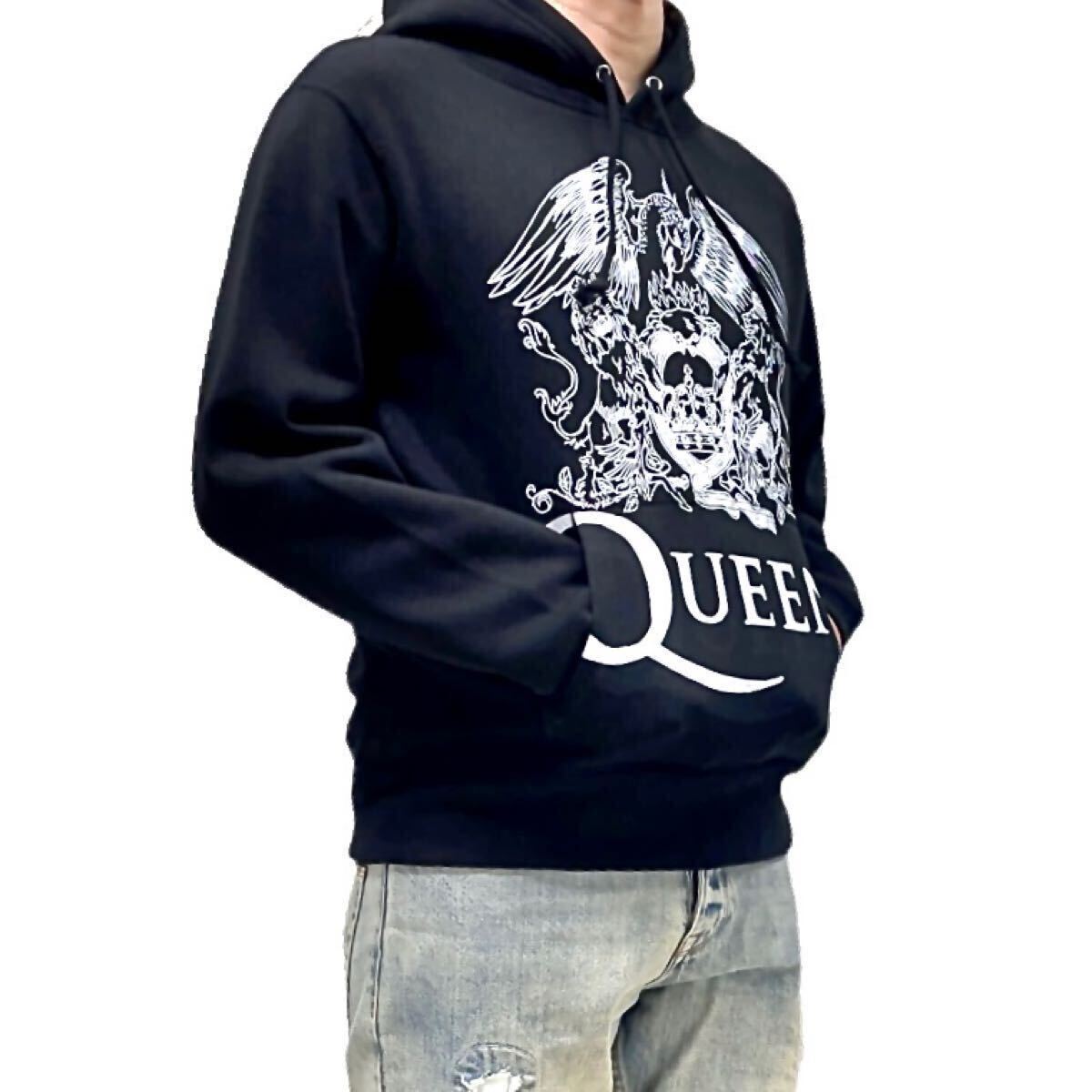 - 新品 ビッグプリント QUEEN クイーン フレディマーキュリー エンブレム バンドロゴ ボヘミアンラプソディ パーカー ユニセックス Lサイズ