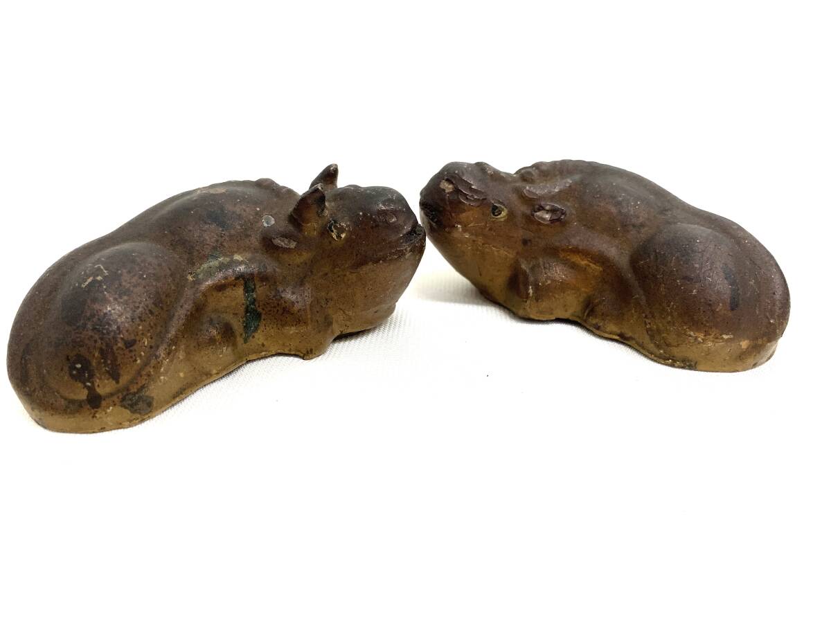 - 〇921【古い置物】当時物 真鍮? 金属製 鋳物 鋳造 置物 オーナメント インテリア オブジェ かば カバ 牛? 動物 詳細不明 総重量251g