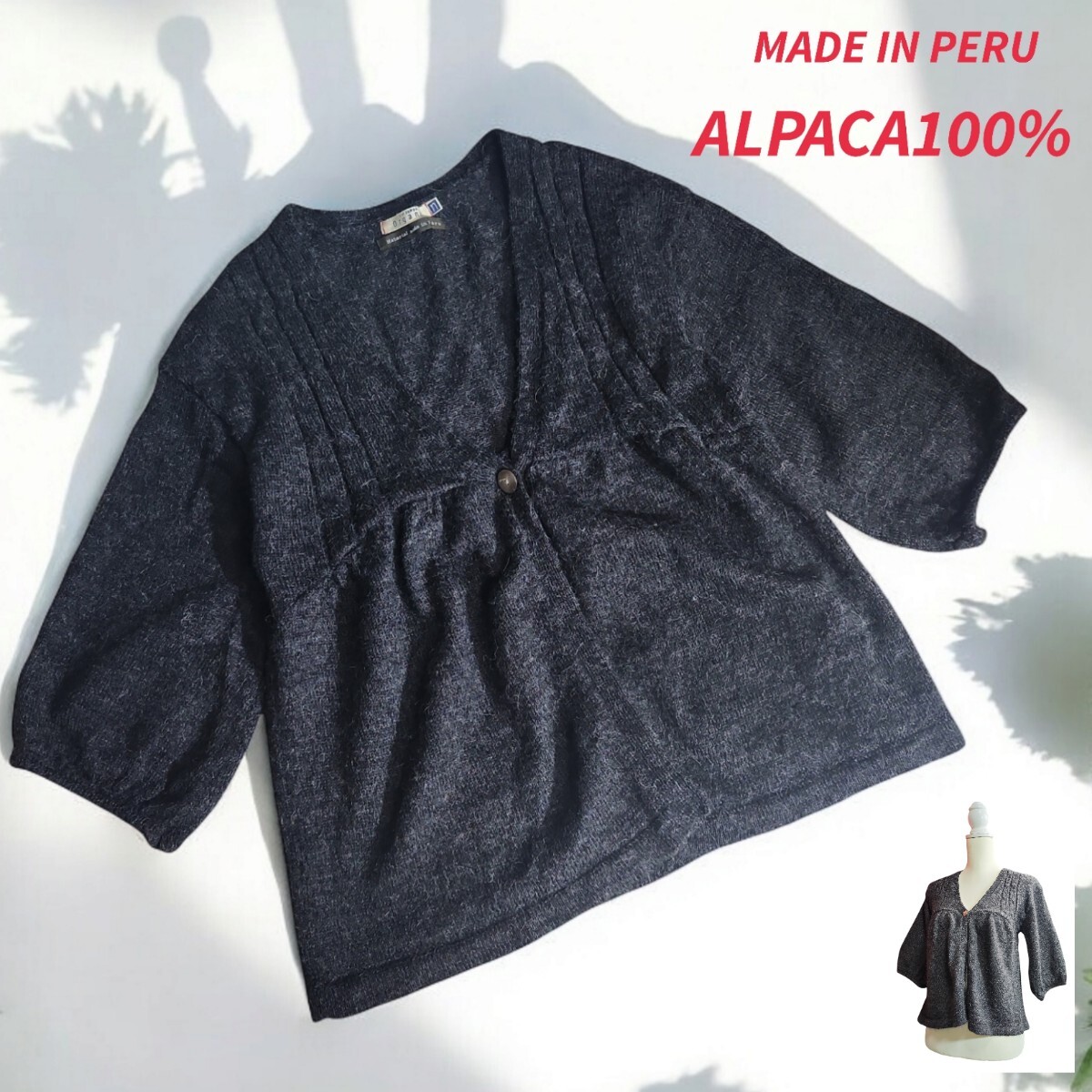 - ZAMPA アルパカ100% ペルー製ニット カーディガン 表記サイズM ダークグレー 68456