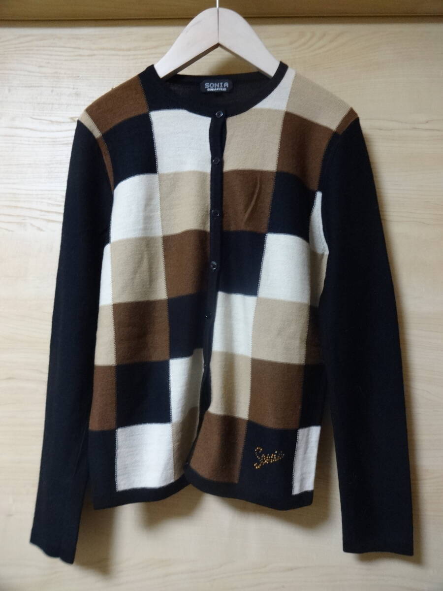 - SONIA RYKIEL ウールカーディガン サイズ38 R8219 黒 茶系ブロックチェック