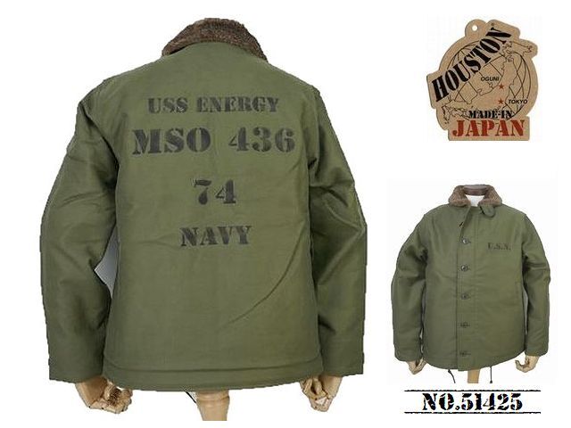 - 【送料無料 24%OFF】HOUSTON ヒューストン CUSTOM N-1デッキジャケット (USS ENERGY) 日本製 NO.51425 OLIVE DRAB_40