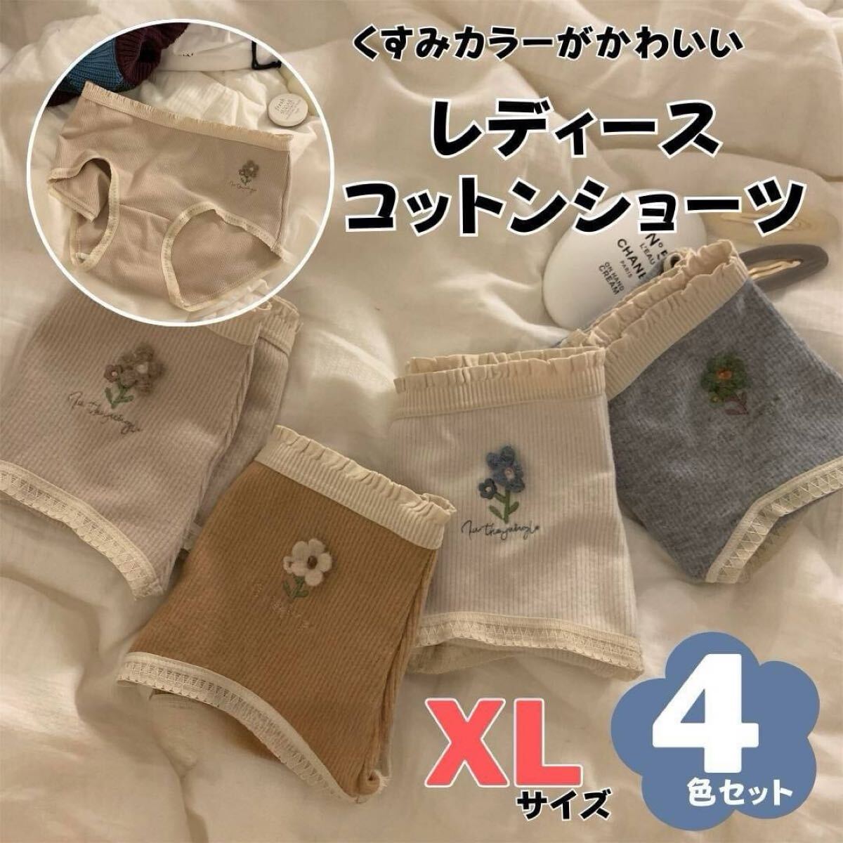 - ショーツ レディース コットン 綿 XL 花 刺繍 くすみカラー 4色セット