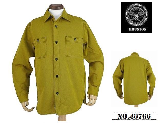 > 【送料無料 30%OFF】HOUSTON ヒューストン ヘビービエラ ソリッドカラーWORKシャツ NO.40766 MUSTARD_Lサイズ