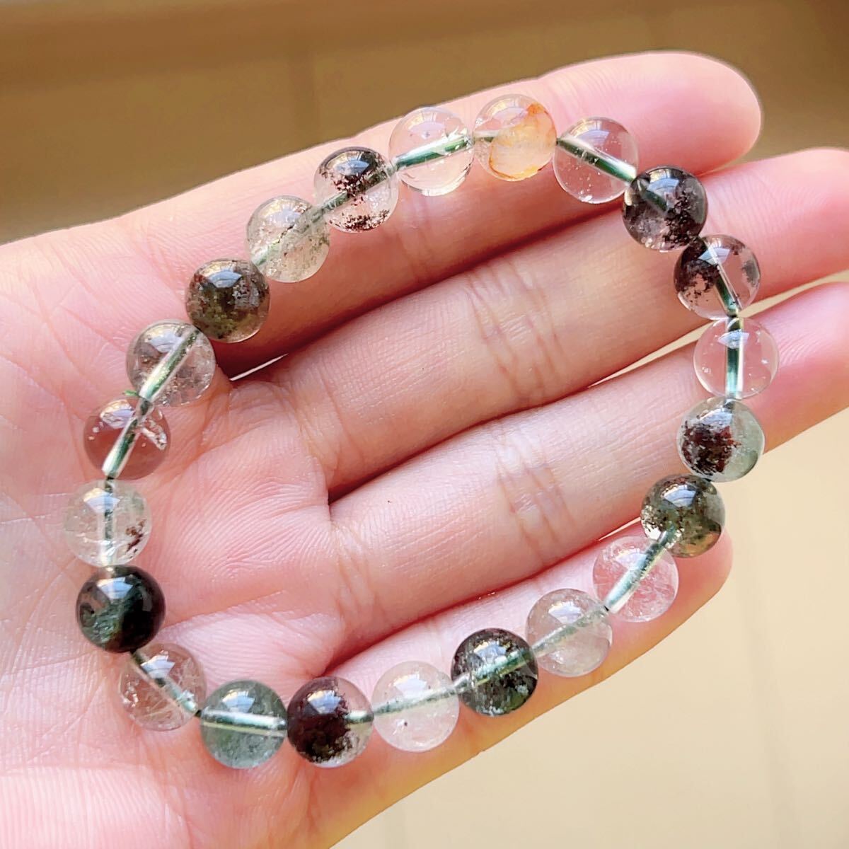 - ◇緑ガーデンクォーツ(庭園水晶)◇パワーストーン◇ブレスレット◇天然石◇巾着袋付き◇プレゼントにも035B1308