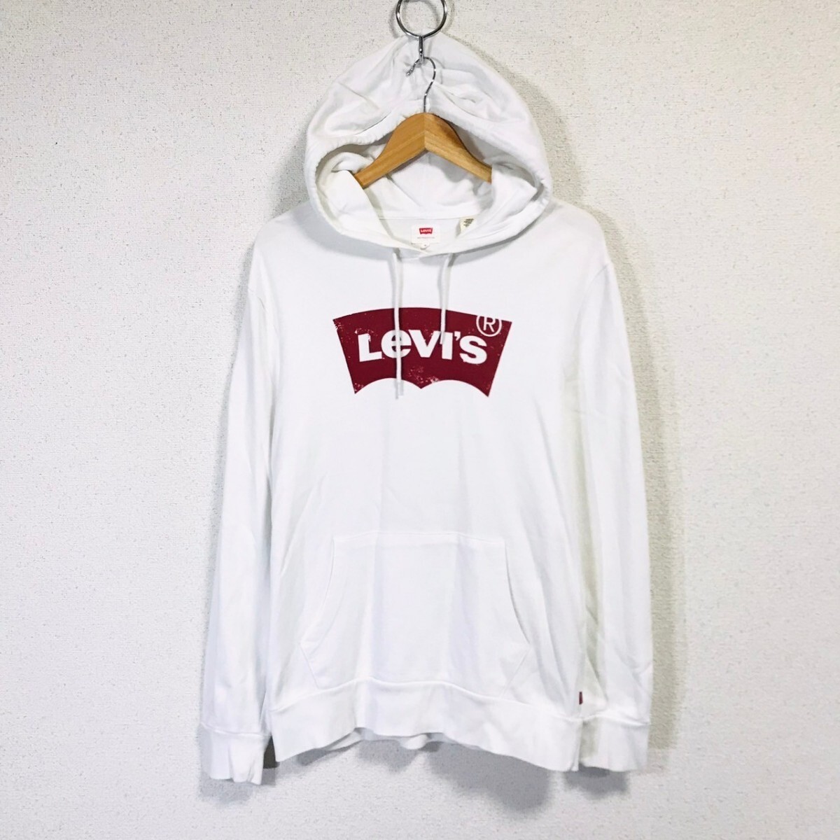 > f1582dL Levi's リーバイス サイズM スウェットパーカー プルオーバー フードパーカー ホワイト 白 メンズ ロゴ アメカジ 古着