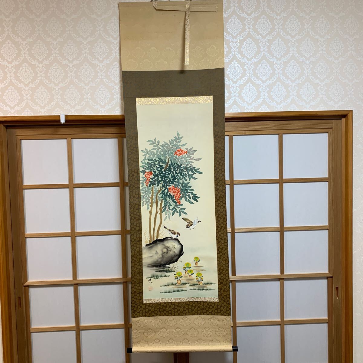 - 掛軸 模写 花鳥図 木箱有り 紙箱有り No104