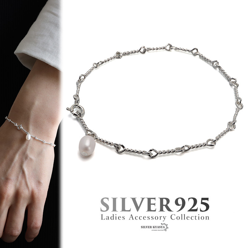 - シルバー925 パールブレスレット 一粒 不揃いビーズブレスレット ロープチェーン 天然淡水パールブレスレット 一粒 シルバー