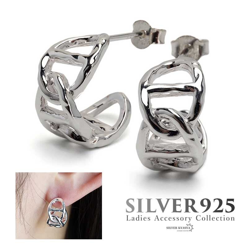 - シルバー925 アンカーチェーンピアス レディース 可愛い スタッドピアス シルバー 碇 錨 両耳2点セット