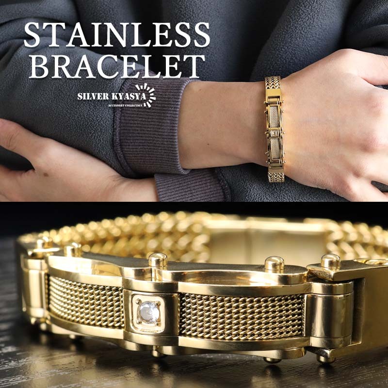 > ステンレス メンズブレスレット ごつめブレスレット チェーンブレスレット ゴールドブレスレット 男性 メンズ 金アレ対応