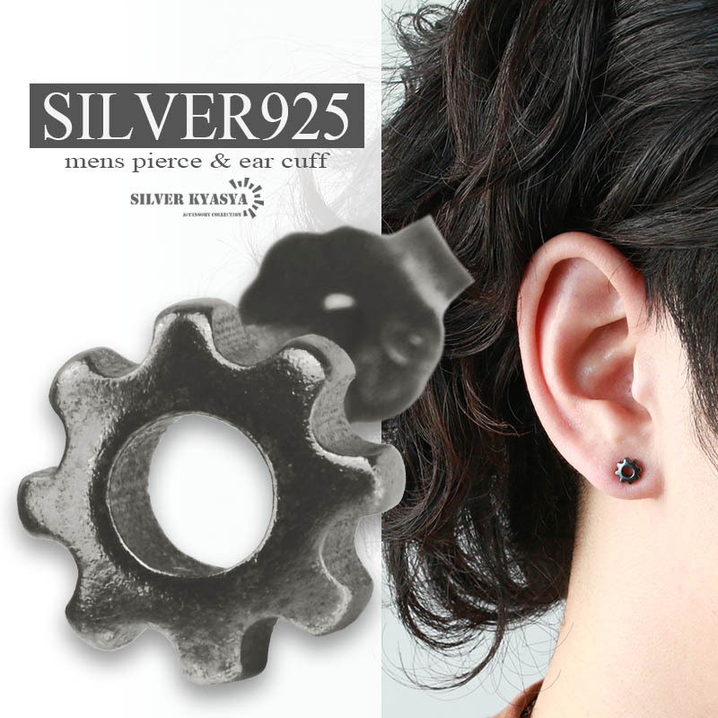 - ギアピアス シルバー925 18G スタッドピアス 歯車 ギアー gear モチーフ メンズ アレルギー対応 片耳用